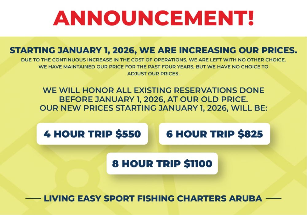 Our flexible packages are designed in a way to accommodate every type of guest. You can pick and choose the deep sea fishing trip you want to take and Living Easy Aruba fishing charters will make sure you get just that.